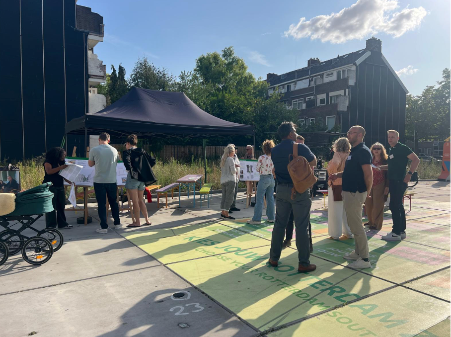 Ja, we hechten veel waarde aan de input van de omgeving. De gemeente heeft een eerste ontwerp gemaakt voor aanpassing van het openbaar gebied, waarbij het autovrije gebied van de Gooilandsingel wordt doorgetrokken voor langs het nieuwe gebouw tot aan de Pleinweg.